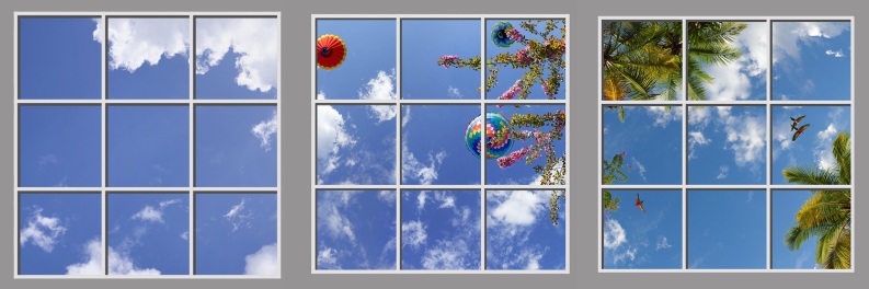 Вид элементов фальш-окна "НЕБО" в подвесных потолках типа Armstrong: