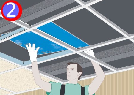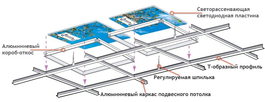 Установка фальш-окон "НЕБО" в подвесные потолки: