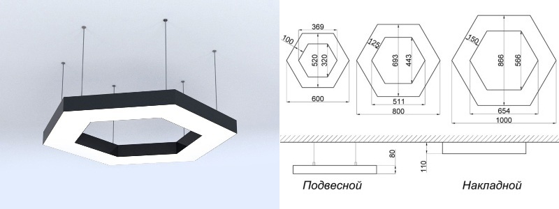 HEXAGON I D1000.05-95W; накладной