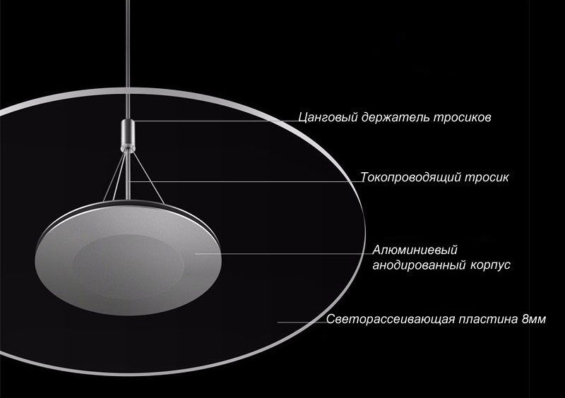 Светодиоды, вмонтированные в алюминиевый корпус светильника, излучают световой поток в отполированный торец светорассеивающей пластины толщиной 8мм. В теле пластины присутствуют светорассеивающие микрочастицы благодаря которым происходит трассировка луча, его многократное переотражение и преломление. Для минимизации световых потерь при трассировке луча, внешний торец светорассеивающей пластины полируется а затем матируется. В выключенном состоянии светорассеивающая пластина визуально практически прозрачна с еле заметной матовостью. Во включенном состоянии светорассеивающая пластина равномерно заливаясь светом, превращается в очень красивый и оригинальный источник освещения с ореолом мягкого и равномерно-рассеяного света.