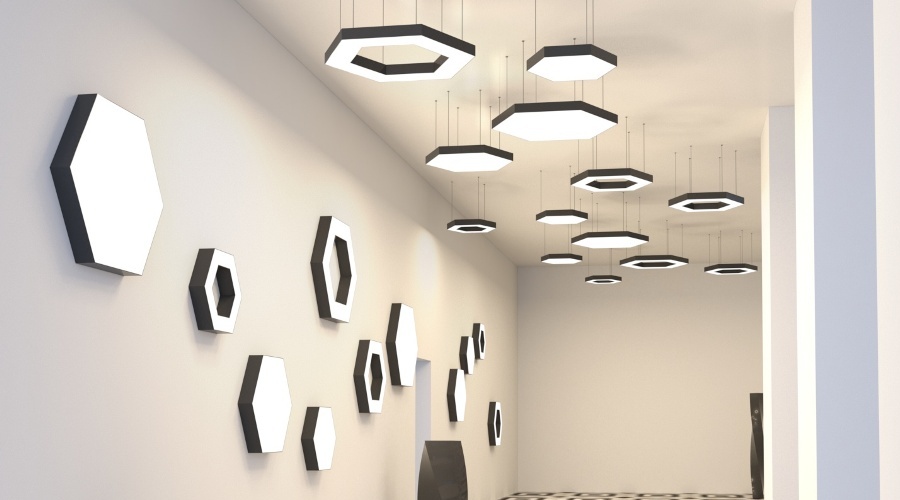 Светодиодные светильники серии HEXAGON I имеют абсолютно равномерную освещенность, что создает ореол мягкого рассеянного света, обеспечивающего содание гармоничной световой среды с сохранением зрительного комфорта. Оригинальный дизайн и прекрасный внешний вид светильника позволяют использовать его в интерьерном освещении квартир, частных домовладений, офисов, баров, кафе и ресторанов и т.д.